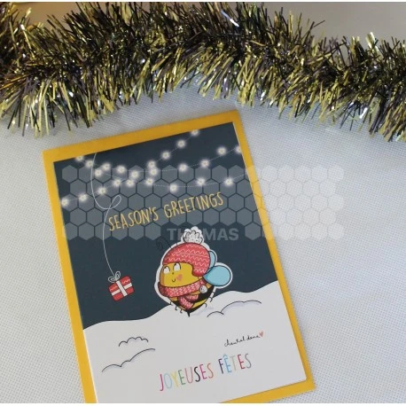Carte illustrée par Chantal Dana « Joyeuses fêtes / Season’s greetings » pour Mel&Bastien.