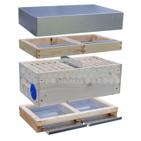 La nuclei Maxiplus Thomas® est une ruchette d’élevage au format d’une haussette (500 x 280 x 172 mm) pour ruchette dadant 6c, correspondant au volume d’un double miniplus. Ce format permet d’utiliser :