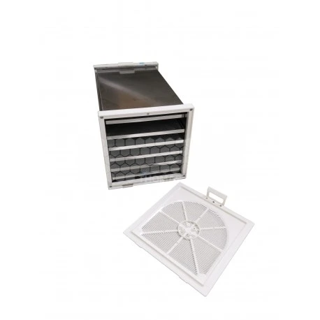 Séchoir déshydrateur tunnel en inox avec thermostat composé de 6 plateaux inox de 24 x 36 x 1,5 cm sur glissières pour la déshydratation et le séchage de votre pollen.
